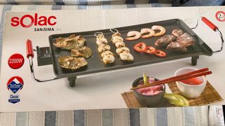 Plancha eléctrica Solac, ideal para asar. - A estrenar, completamente nueva. Con regalo de manteles y con caja original. - Superficie antiadherente. - Incluye accesorios.