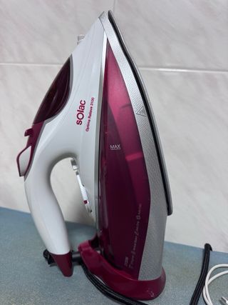 Plancha de vapor de la marca Solac. Ideal para el cuidado de la ropa. Recogida en domicilio, con descuento - Selector de temperatura y vapor. - Función Autolimpieza. - Base de planchado. - Depósito de agua.