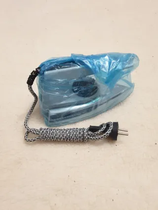 Plancha de viaje de 600 gramos,de la marca Solac, fácil de transportar, con su funda. Modelo 631 de Solac, se puede ver en las imágenes - Diseño metálico y mango de plástico negro.