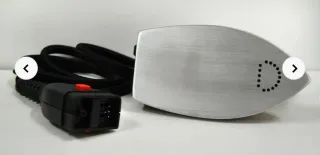 Plancha de viaje compacta, ideal para llevar contigo a donde vayas. Su diseño vintage le da un toque especial. - Color blanco y negro - Incluye caja original y manual de instrucciones en ingles. La caja está un poco deteriorada debido al paso del tiempo. Potencia de 110v a 220v.Funciona perfectamente.