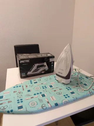 Plancha de vapor IMETEC Zerocalc con su tabla de planchar portátil. - Plancha con tecnología Zerocalc. - Incluye tabla de planchar. - Diseño moderno y funcional. Los vendo también por separado. Podéis hacerme una oferta por mensaje y la tendré en cuenta.