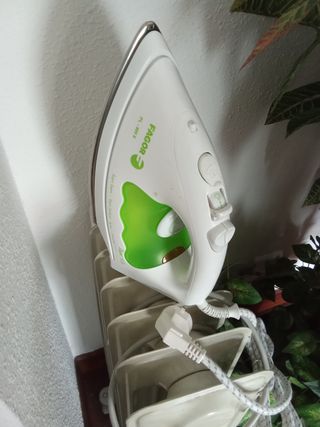 Plancha de vapor para el hogar. Suela metálica con orificios para la salida de vapor. - Diseño ergonómico. - Base de plancha con múltiples orificios.