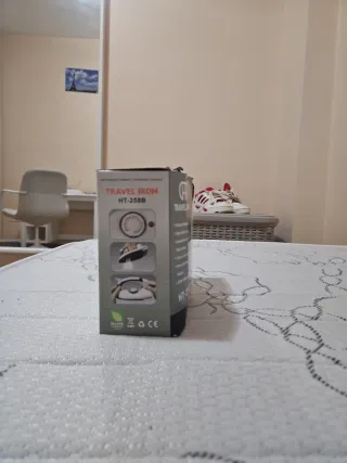 Plancha a vapor de viaje de la marca SteamIt, de color blanco. En buen estado.