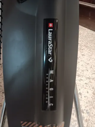 Centro de planchado Laurastar Magic Evolution. - Diseño elegante en color negro. - Etiqueta con el logo de Laurastar y el nombre del modelo. - Indicación de EVOLUTION en la parte inferior.