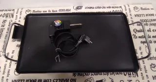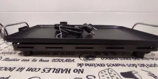 Parrilla eléctrica pequeña, ideal para cocinar en espacios reducidos. Está en muy buen estado y apenas se ha usado. - Incluye cuatro recipientes para cocinar a la piedra. - Plancha de cocción estriada. - Diseño compacto y elegante.