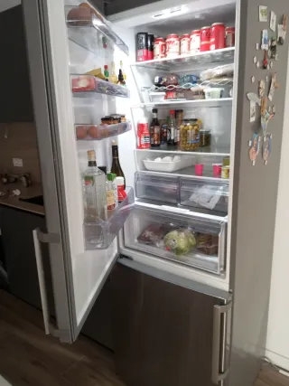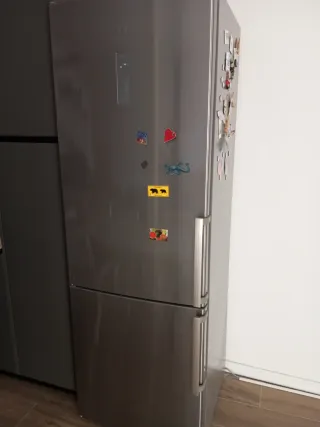 Nevera Balay de color plateado. Diseño moderno y elegante. - Acabado metálico. - Tiradores integrados.