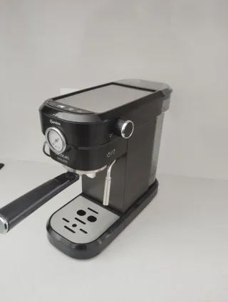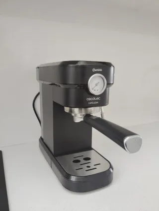 Cafetera de espresso Cecotec Cumbia en color negro. Muy bien cuidada y limpiada después de cada uso. - Acabado en negro brillante. - Panel de control superior. - Incluye portafiltros y vaporizador.