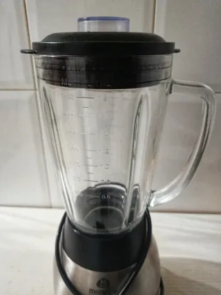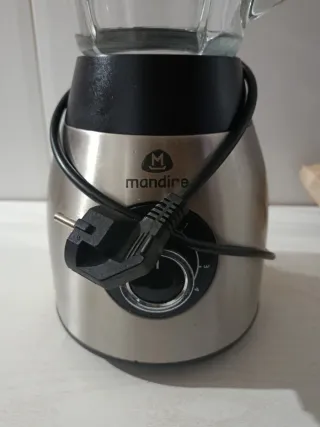 Batidora de vaso Mandire de cristal. Ojo- No tiene cuchillas. - Jarra de cristal con asa.(Buen estado) - Tapa negra con dosificador. - Base plateada y negra.( Motor funciona perfectamente)