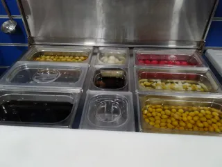 Nevera expositora de acero inoxidable, ideal para mantener y presentar encurtidos y otros alimentos. - Construcción robusta en acero inoxidable. - Diseño con tapa superior abatible. - Compartimentos interiores para organización.