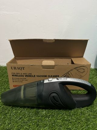 Aspiradora de mano inalámbrica URAQT, modelo R-60, diseñada para uso en vehículos. - Para uso en seco y húmedo. - Fuerte succión. - Incluye filtro HEPA.