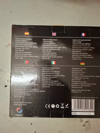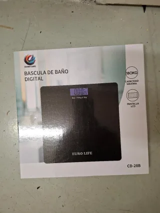 Báscula de baño digital Euro Life, modelo CD-28B. Diseño moderno y elegante. - Capacidad máxima de 180 kg. - Pantalla LCD de fácil lectura. - Sin abrir.