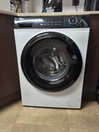Lavadora de carga frontal Haier con capacidad de 9 kg. - Diseño moderno en color blanco y negro. - Panel de control digital con selector giratorio. - Puerta con acabado brillante. CON GARANTIA HASTA SEPTIEMBRE 2026 MEDIDAS EN LA FOTO NO NEGOCIABLE