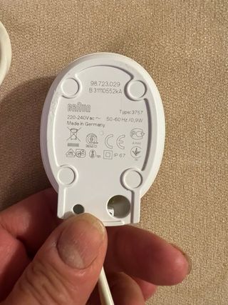 Cargador para cepillo de dientes eléctrico. - Cable blanco. - Base de carga blanca.