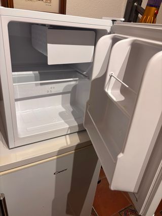 Frigorífico Hisense de 85 cm de alto, 55 cm de ancho y 56 cm de fondo. Tiene 5 años de antigüedad. - Color blanco. - Diseño compacto.