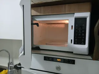 Microondas Whirlpool en color blanco. Panel de control digital. Puerta con apertura lateral. Funciona perfectamente lo cambio porque voy a coger uno encastrado para ese hueco