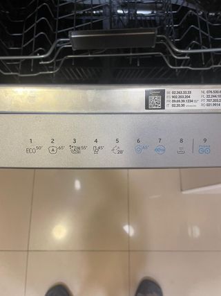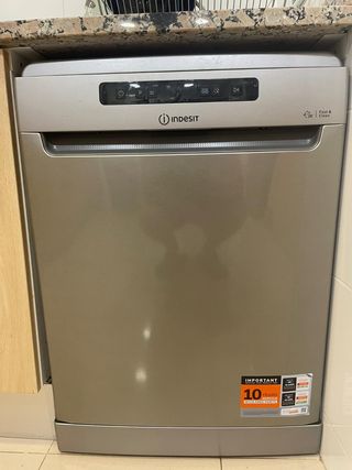 Lavavajillas de la marca Indesit con panel de control. - Programa Fast & Clean. - Indicador P para programa. - Botón de encendido/apagado. - Botones de inicio/pausa y avance. - Etiqueta de 10 años de servicio con piezas gratuitas.