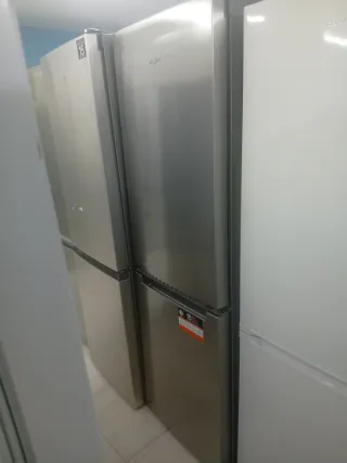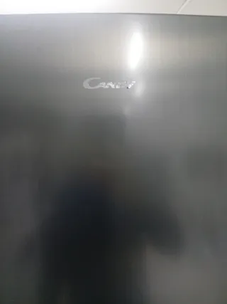 Frigorífico de dos puertas en color gris de la marca Candy. Diseño moderno y elegante. - Puerta superior para congelador. - Puerta inferior para frigorífico. - Acabado en acero inoxidable.