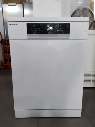 Lavavajillas de la marca Daewoo en color blanco. - Panel de control con botones. - Diseño moderno y elegante.