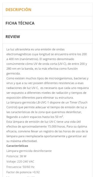 Lámpara portátil para desinfección con ozono. - Diseño moderno y compacto. - Base redonda y estable. - Tubo germicida de luz azul.