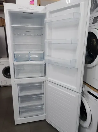 Nevera combi de la marca Noevo, con diseño moderno y funcional. - Puertas reversibles. - Cajón de verduras. - Iluminación LED.