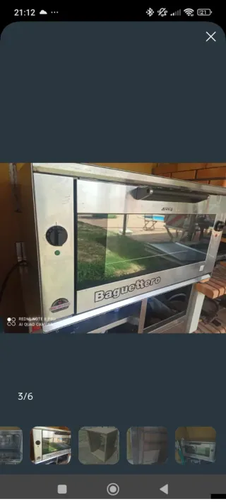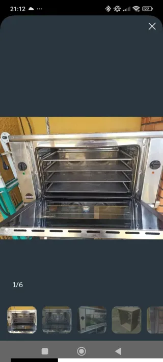 Horno eléctrico de sobremesa marca Smeg, modelo Baguettero. Ideal para panadería y repostería. - Acabado en acero inoxidable. - Puerta con cristal para visualización. - Control de temperatura. - Diseño compacto.