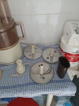 No he llegado a usar todas las funciones y las que sí usé tampoco fueron muchas veces. Está como nuevo como se puede ver en las fotos. De los procesadores de alimentos más completos: liquidificadora, picadora, batidora, exprimidor, licuadora, amasadora. Las piezas de repuesto vendidas individualmente están valoradas en 170 euros.