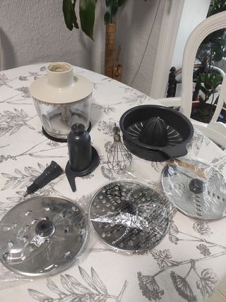 Modelo Powefull Titanium 1000 PRO casi casi sin estrenar, algunas piezas jamás usadas como las cuchillas que tienen todo su filo de nuevas, absolutamente ningún desgaste. Todos juntos o por piezas a demanda. (**Posibilidad de batidora completa con resto de accesorios**) - Incluye: - Jarra del procesador con su protector de base antideslizante (con tapa, última foto). - 4 Cuchillas para rallar y cortar - Soporte cuchillas circular. - Barra soporte para lo anterior (última foto) . - Cuchilla principal procesador - Accesorio de empujar alimentos al procesador