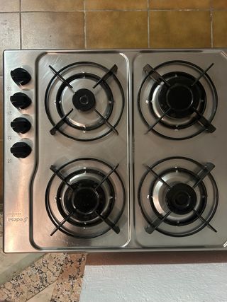 Placa de gas Edesa con cuatro quemadores. Acero inoxidable. Estamos en Puerto de La Cruz cerca de Casa Azul. Posible envío zona norte con coste extra.