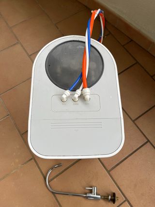 Purificadora por ósmosis inversa. La ósmosis inversa se basa en el mismo que sigue nuestro cuerpo, donde al agua se distribuye mediante la ósmosis natural, que es nuestro riñón, separando sus impurezas es capaz de eliminar del 95% al 99% de los sólidos disueltos totales (TDS) y el 99% de las bacterias y los virus, proporcionando así un agua segura y de sabor puro, para beber y para cocinar. ES NECESARIO CAMBIARLE DOS FILTROS, EL DE ELIMINADOR DE SABORES Y OLORES Y EL DE SEDIMENTOS QUE VALEN 15€ CADA UNO. EL FILTRO DE CARBONO ESTÁ BIEN. En la foto nº 6 se ve el grifo. Facilito toda la información necesaria para su instalación.