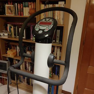 Útil para ejercitar la musculatura y perder peso. Funciona con electricidad. Incluye correas y folleto de instrucciones, y tabla de ejercicios