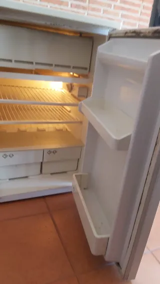Frigorífico compacto, ideal para espacios reducidos. - Estantes interiores. - Cajones inferiores. - Puerta con compartimentos.