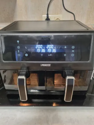 Freidora de aire Princess con capacidad de 4,5 litros. Ideal para preparar tus comidas favoritas de forma saludable. - Diseño moderno en color negro. - Panel de control digital. - Potencia de 1500W.