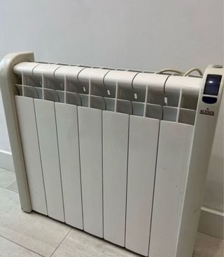 Radiador eléctrico Acesol en buen estado. Es un radiador de diseño elegante y funcional, ideal para calentar una habitación. - Dispone de un termostato digital para controlar la temperatura. - Incluye sistema de seguridad. - Fácil de instalar. 3 radiadores 7 elementos. Potencia 770 W. 80 € cada uno. 2 radiadores 5 elementos. Potencia 550 W. 60 € cada uno 1 radiador 11 elementos. Potencia 1210 W. 100 €. Todos juntos: 400 €