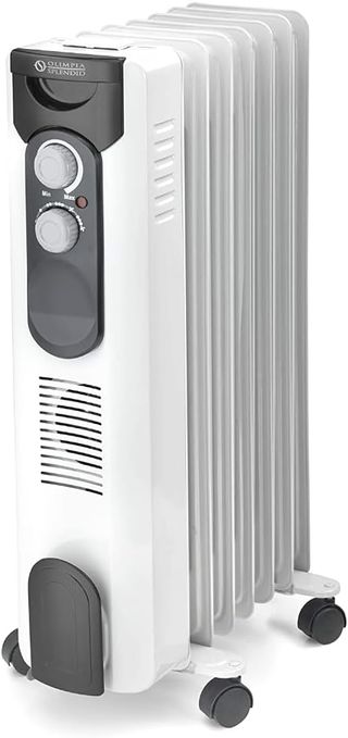 Calentador eléctrico de aceite con ruedas para facilitar su movilidad. Ideal para calentar estancias. - Diseño de radiador con varias aletas. - Panel de control en la parte superior.
