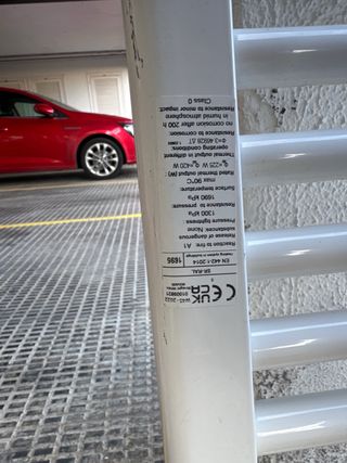Radiador de baño Equation por infrarrojos de dos tubos con resistencia de cuarzo que se puede colocar en suelo o instalar a pared. Dispone de dos posiciones de potencia: 600 y 1200 W. Tiene un índice de protección IP24 (grado de protección contra agentes externos y/o agua), por lo que es ideal para colocar en tu baño y calentar esta estancia antes de la ducha. Medidas: 16,8 x 57,2 x 13,4 cm (ancho x alto x fondo). Ideal para baños - Diseño moderno en color plateado y blanco. - Fabricado en metal y plástico. -Lo único a destacar es que la conexión se hizo directamente a la red eléctrica. Pero vuelve a tener su conector normal.