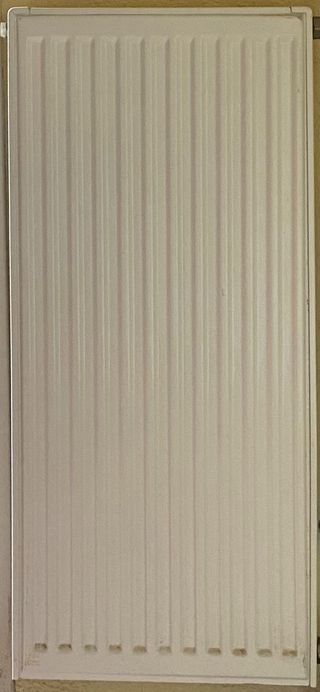 Radiador de agua de color blanco, con un diseño de lamas verticales. - Material: Aluminio. - Color: Blanco. - Tipo: Radiador de agua.