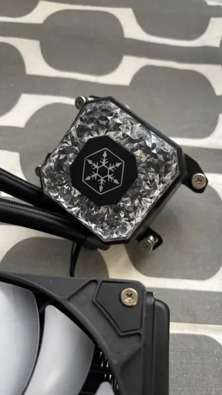 Sistema de refrigeración líquida con doble ventilador y iluminación ARGB. Usada solo 2 meses. - Radiador de 280 mm. - Ventiladores con aspas blancas y marco negro. - Bomba con diseño iluminado. - Mangueras flexibles y malladas. Especificaciones: Aplicación Intel LGA 115X/1366/1200/2011/2066 AMD SocketsTRX4/TR4/AM4/AM3/AM2/FM2/FM1 Bloque de agua Medidas76mm (L) x 66mm (A) x 76mm (G) Material Base de cobre con cuerpo de plástico Radiador Medidas140mm (L) x 28mm (A) x 314mm (G) Material Aluminio Tubo Largo400mm Material Goma Bomba Velocidad del motor3000 ±10% RPM Voltaje clasificado 12V Corriente clasificada 0,42A Conectores 2510