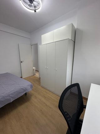 habitación para pareja en piso compartido con Wi-Fi de 10 GB, amueblada con cama, armario, mesa y silla, smart TV , calefacción individual por radiador eléctrico y ventilador de techo. Todo a estrenar. Equipada con sábanas, toallas y menaje de cocina. Limpieza de zonas comunes(cocina, baño y aseo), agua y luz incluida en el precio del alquiler Los requisitos son un mes de fianza, tener contrato y una nómina El piso se encuentra a 5 min a pie de la universidad rey Carlos III y a 11 minutos a pie de la parada de metro Juan de la Cierva.