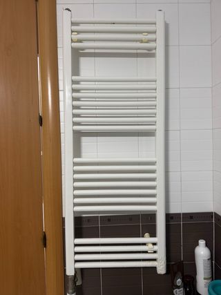Radiador toallero de baño, en color blanco. Está en buen estado, aunque presenta algunas señales de uso. - Medidas aproximadas: 45cm x 127cm - Perfecto para baño o aseo.
