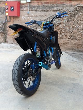 motor: -cigueñal reforzado voca -airsal 80cc -embragues voca -carburador 28 oko -laminas italkit 8 p -rotor mvt negro con luzes -escape blaze 80 -doble radiador -peraca krm azul y muchísimas chuches extra Neumáticos -delantero slick agua a 20% -trasero batlax 80% sin ITV precio 2800 negociables. cualquier cosa preguntar No leer: Rieju mrt, Rieju trophy, Derbi senda, Derbi drd, Beta rrt, Aprilia sx 50, Sherco SM 50