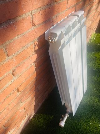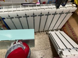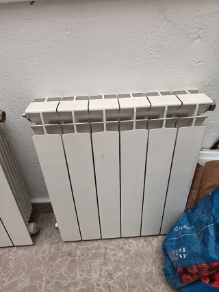 Conjunto de radiadores de agua. Medidas (cm) radiador grande: largo 83x 9,5 ancho x 58 alto Medidas (cm) radiador pequeño; largo 28 x 9,5 ancho x 58 alto - Fabricados en metal. - Color blanco. - Funcionan a la perfección. Los quitamos porque hicimos reformas y no teníamos espacio (pusimos armarios) - Uno para una estancia principal (radiador grande) y otro para una estancia chiquita