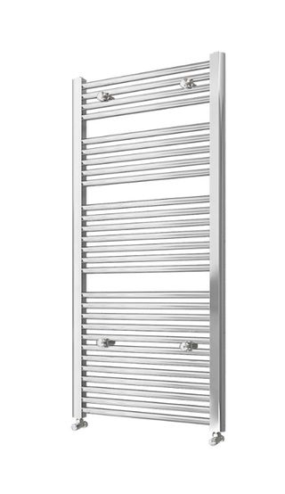 Radiador toallero de baño en color plateado. Nuevo, sin uso. Con su embalaje. Está perfecto, se abrió y vimos que nos habíamos equivocado. Es para circuito de agua. - Medidas: 600x1200 mm (aprox.) - 28 tubos de Ø22x1 mm - 2 perfiles de 40x30xR15x1.5 mm - Incluye soportes de pared. - Diseño elegante y moderno - Ideal para calentar toallas y baños
