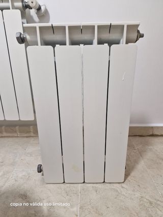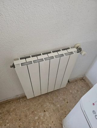 Radiadores de aluminio para calefacción de agua caliente en buen estado. Perfectos para calentar una habitación pequeña o mediana. Son de color blanco. Se pueden vender juntos o por separado: - 2 radiadores de 6 elementos - 1 radiador de 5 elementos Ideales para mejorar la eficiencia energética de tu hogar. 50€ por los tres. - Medidas compactas y diseño elegante. - Listo para instalar.