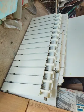 Radiadores de aluminio para calefacción de agua caliente. Son de color blanco. Se pueden vender juntos o por separado: - 1 radiador de 8 elementos. - 1 radiador de 3 elementos. - 1 radiador de 14 elementos. Ideales para mejorar la eficiencia energética de tu hogar. 75€ por todos.