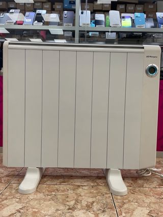 Radiador eléctrico de bajo consumo Orbegozo, ideal para mantener tu hogar cálido de forma eficiente. - Diseño moderno y elegante. - Panel de control digital. - Patas de apoyo incluidas. - Potencia 1300w. - 7 elementos. Solo se ha usado una semama.