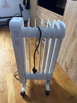 Radiador de aceite eléctrico. Buen estado, salvo por una rueda. Entrega en Alcalá de Henares, no hago envíos