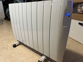 Radiador eléctrico de 7 elementos, ideal para calentar estancias de hasta 30 metros cuadrados. Funciona perfectamente. - Diseño moderno en blanco y gris. - Fabricado con materiales resistentes de metal y plástico. - Ruedas para facilitar su movilidad.