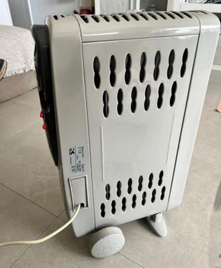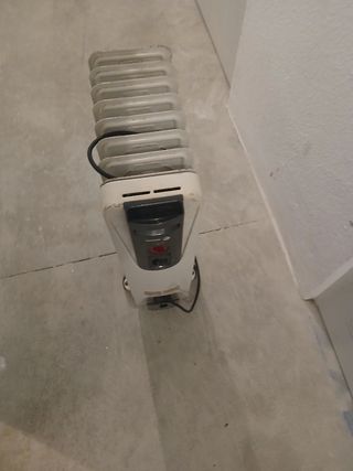 Radiador eléctrico de 7 elementos, ideal para calentar una habitación pequeña o mediana. Se encuentra en buen estado, aunque presenta algo de polvo. - 7 elementos de calefacción. - Diseño clásico. - Ruedas para facilitar su movimiento.