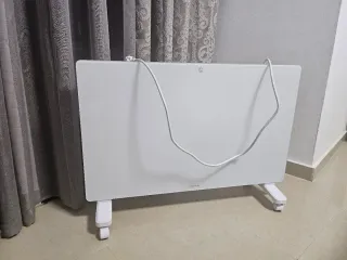 Calentador de baño eléctrico con control remoto. - Diseño moderno y compacto. - Mando a distancia incluido para mayor comodidad. - Panel de control digital. Tiene una extensión en el cable por qué era muy corto. Solo se ha usado solo este invierno ya que no tenía potencia suficiente para el baño en el que estaba.