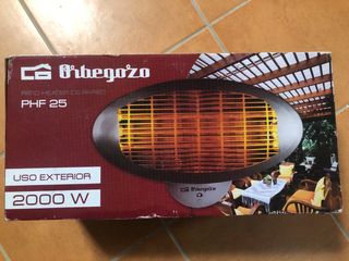 Estufa electrica ORBEGOZO Sin utilizar, con su plastico, unicamente la caja dañada por estar guardada Uso exterior, como terraza 2000 w, hasta 3 m de alcance y apertura de 120 grados